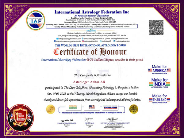 Azhar Ali is one of the top astrologer right now. Azhar Ali is a powerful muslim astrologer who specialises in Indian Vedic astrology, Dua And Wazifa Expert. People do receive her predictions on their personal lives.